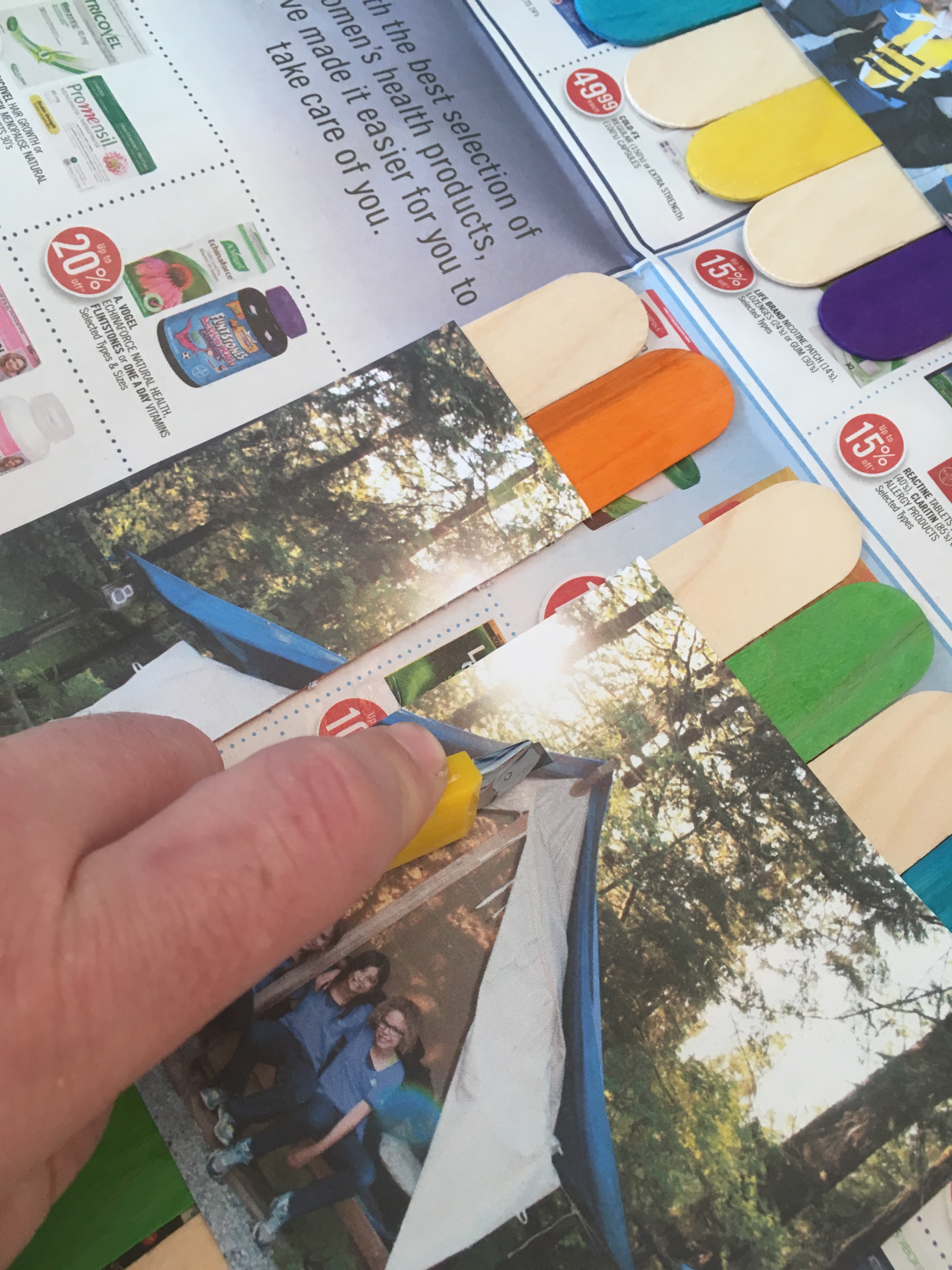 Once it dries (this won’t take long if you’ve only put a thin layer of mod podge on the back), you can start to cut the individual sticks away with their pictures.