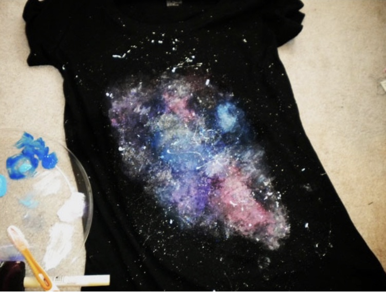 DIY Fashion: Painted Galaxy T-Shirt – College Fashion— Read on http://www.collegefashion.net/fashion-tips/diy-fashion-painted-galaxy-t-shirt/