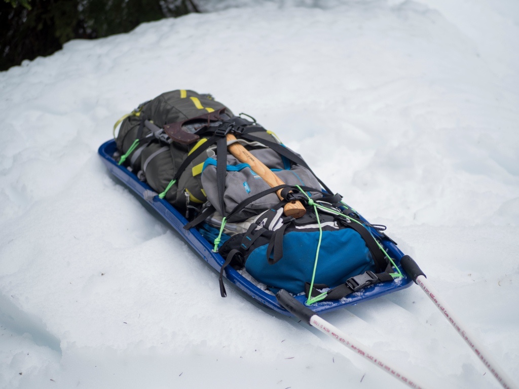 A pulk sled is one that is designed to carry your gear over snow. It should have tie down points and a rigid run line to the wearer. It should also be attachable to the body.