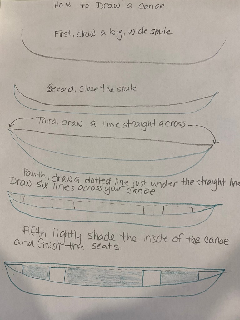 Next, lets draw a canoe! This is the part where I remind my Brownies that Rainbow Owl is not very good at drawing, but that doesn’t stop me from trying!