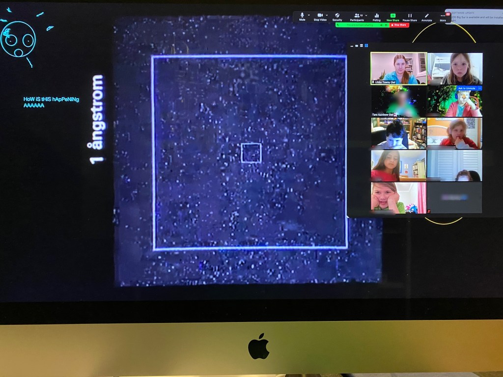 This activity is a part of NASA’s Universe of Learning and can be found here: The Expanded Universe: Playing with Time. The activity can take anywhere from 5-20 minutes depending on how deep you want to go. I had a balloon ready to go, with star stickers and the time wave already drawn, and did it more as a demonstration. However, having the girls do the activity would be much more meaningful (we were constrained by time and pandemic resources).