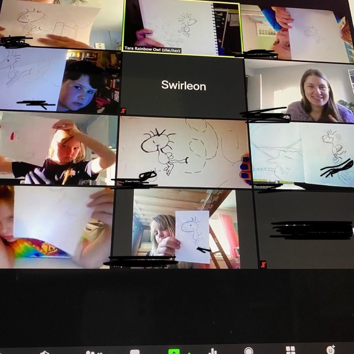 Here is a link to the playlist, so you can choose which Peanuts Character you want to draw for your meeting (I recommend either the Snoopy or Woodstock ones): Peanuts Sketch School