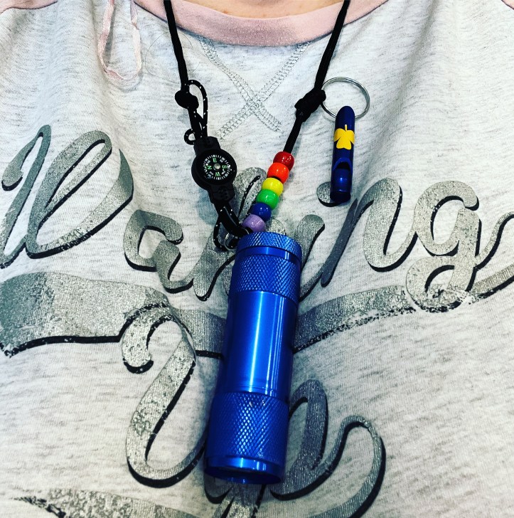 This Rainbow Owl is very serious about whistles. They can be a really fun toy, but Guiding Whistles are not toys, they are tools. I explain this to my Brownies very seriously. These are only to be used in emergencies, or when practising for emergencies. When they go home, the Guiding Whistles should be placed in a safe spot with the rest of their Guiding Stuff and never used outside of it’s purpose. I even have them line up and receive their whistles in a very formal way, and I ask them to promise to use it responsibly. This way, I have found, is the only way to prevent having a Migraine Meeting.