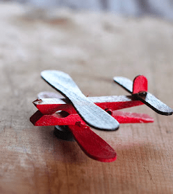 I was inspired by several pins on Pinterest that I found, and played a little with clothespins and wooden ice-cream sticks to make these Clothespin Airplane party favors. They came out pretty cute…