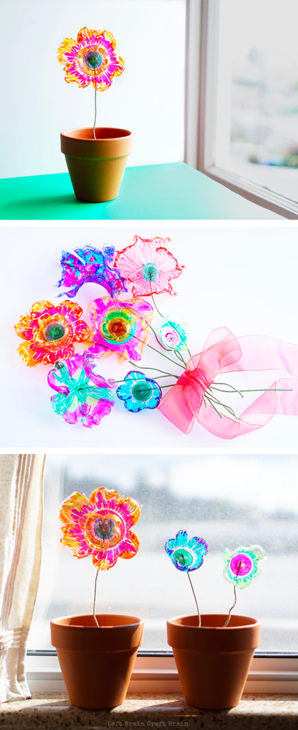 This is pretty much the prettiest science experiment we’ve ever done. Through the magical chemistry of polymers, you can turn recycled plastic into a beautiful flower garden or bouquet. So save your plastic cups and plates