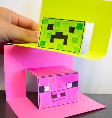 Easy Pop-up Minecraft Creeper and Pig Craft