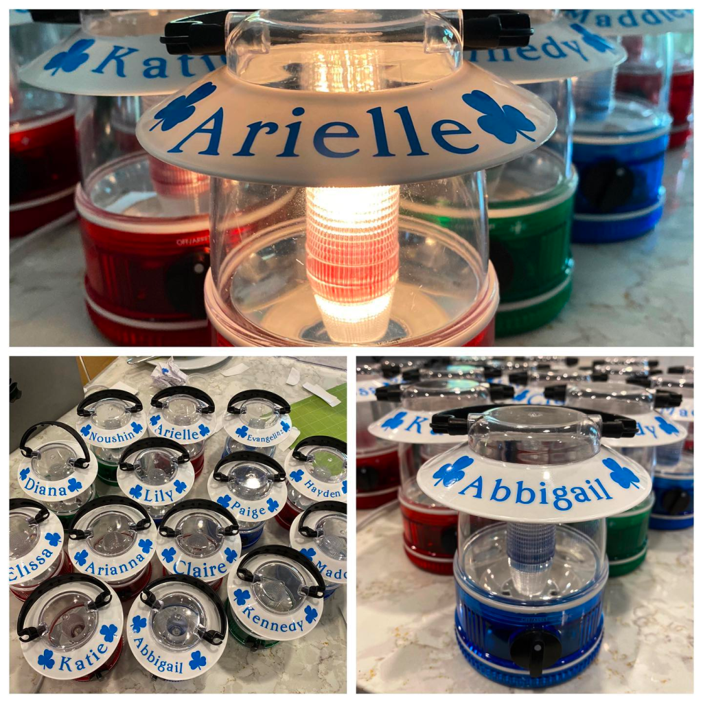 Lanterns made by the 2nd years for 1st years to use at their Enrollment Ceremony and for indoor campfires etc. We have used various lanterns from the Dollar Store over the years to complete this project and then I make up stickers from my cricut to put them on. Lots of amazing ideas on Pinterest!