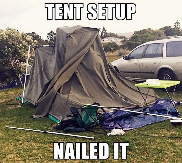 - Each team starts setting up their tent.