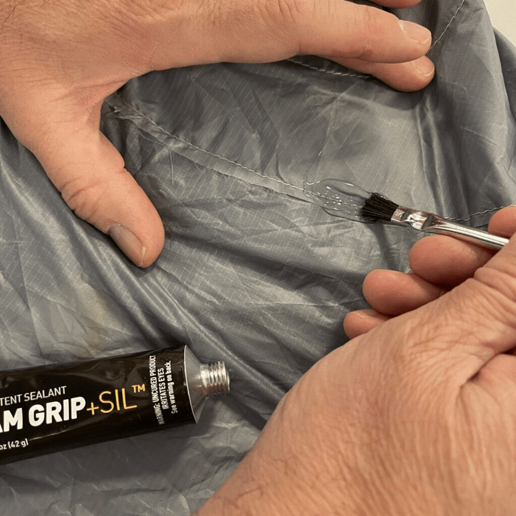 - Tent sealant: Make sure to choose the correct type for your tent. Silicone-treated fabrics require a different sealer than polyurethane-coated fabrics. Most tents use polyurethane-coated fabrics, but if you’re unsure, check with the manufacturer for guidance.